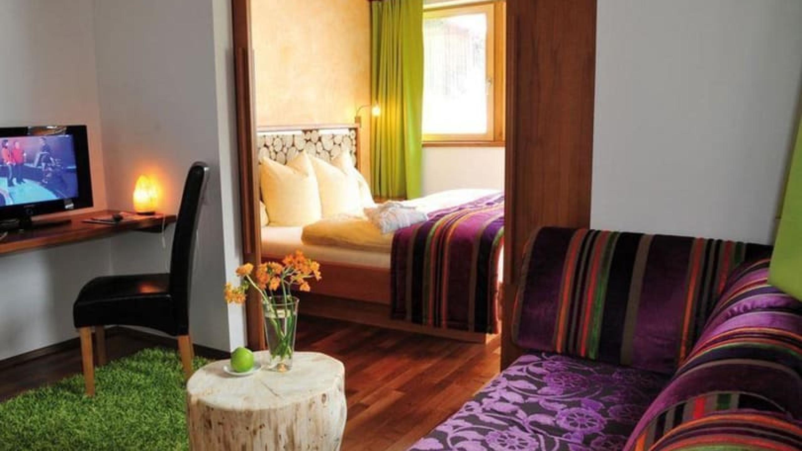 Das einladende Doppelzimmer befindet sich in der ersten Etage und punktet mit einem großzügigen Badezimmer sowie einem begehbaren Schrank. Wohn- und Schlafbereich können durch eine Schiebetüre abgetrennt werden. Das Doppelzimmer verfügt über eine Nordbalkon (Straßenseite) mit Blick auf das Montiel und die Vallüla. Eine Minibar wird auf Wunsch bereitgestellt.
